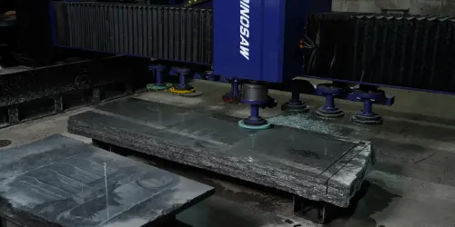 A kitchen fabricator needed extensive manual work for irregular-shaped countertops. DINOSAW's visual system captured exact outlines and created precise grinding paths. This eliminated empty area processing, removed manual finishing, and delivered consistent quality.