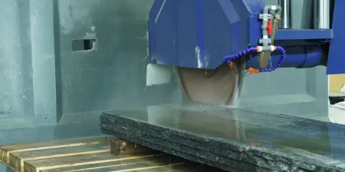 Inverter-controlled feed speed adjusts to different stone types, from soft marble to dense granite
