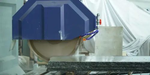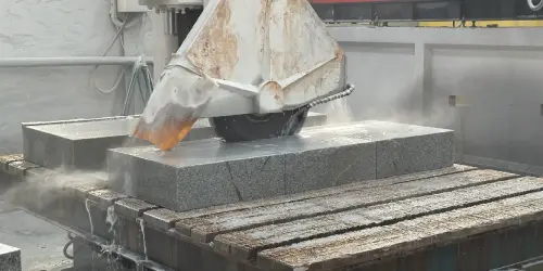 Black and grey granite fabricators cut tombstones with precise vertical cuts and 45° bevels. Production time reduced by 45% with one-time settings. Single operator now manages what required two workers while maintaining quality standards.