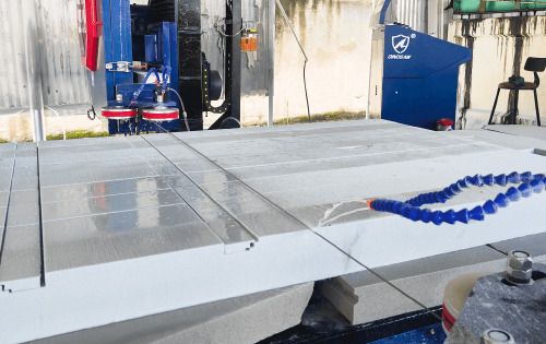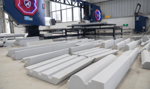 | Our CNC diamond wire saw cuts foamed ceramic panels with exceptional precision at 1000mm/min speed, creating perfectly dimensioned railings with clean edges and smooth surfaces. The machine's ability to maintain 1mm tolerance ensures precise fitting components while preserving the material's structural integrity during cutting. |