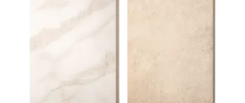 Quartzite is hard and abrasive, so sanding lines and tooling marks can remain visible after standard polishing—especially on light colors.