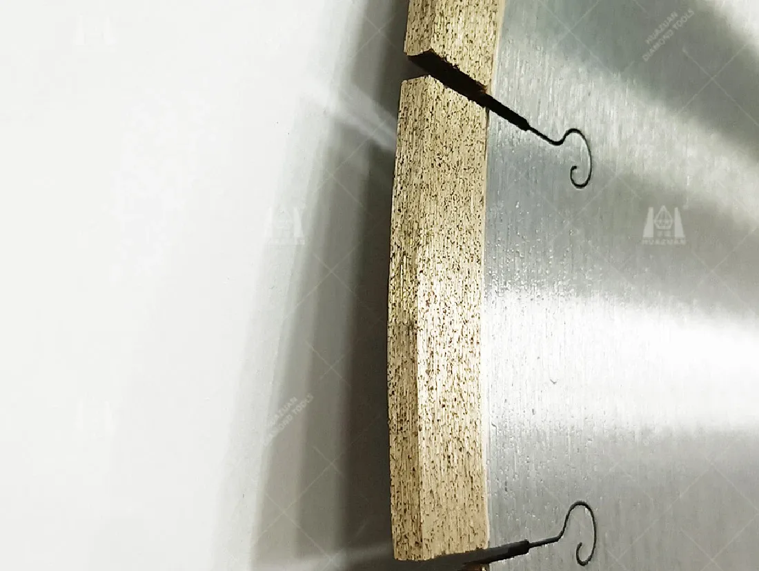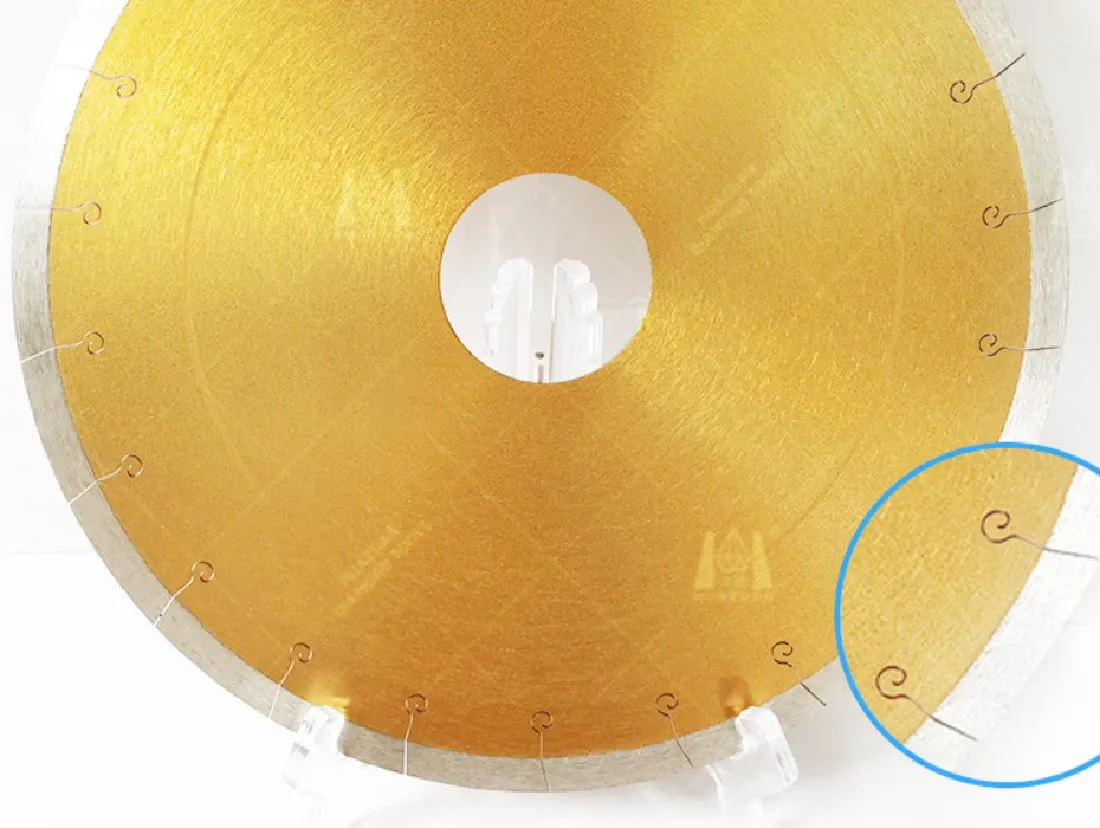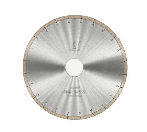 Rigid, tensioned steel core + continuous‑rim keep the kerf straight, reducing wobble/deflection on large‑format porcelain/vitrified tiles.