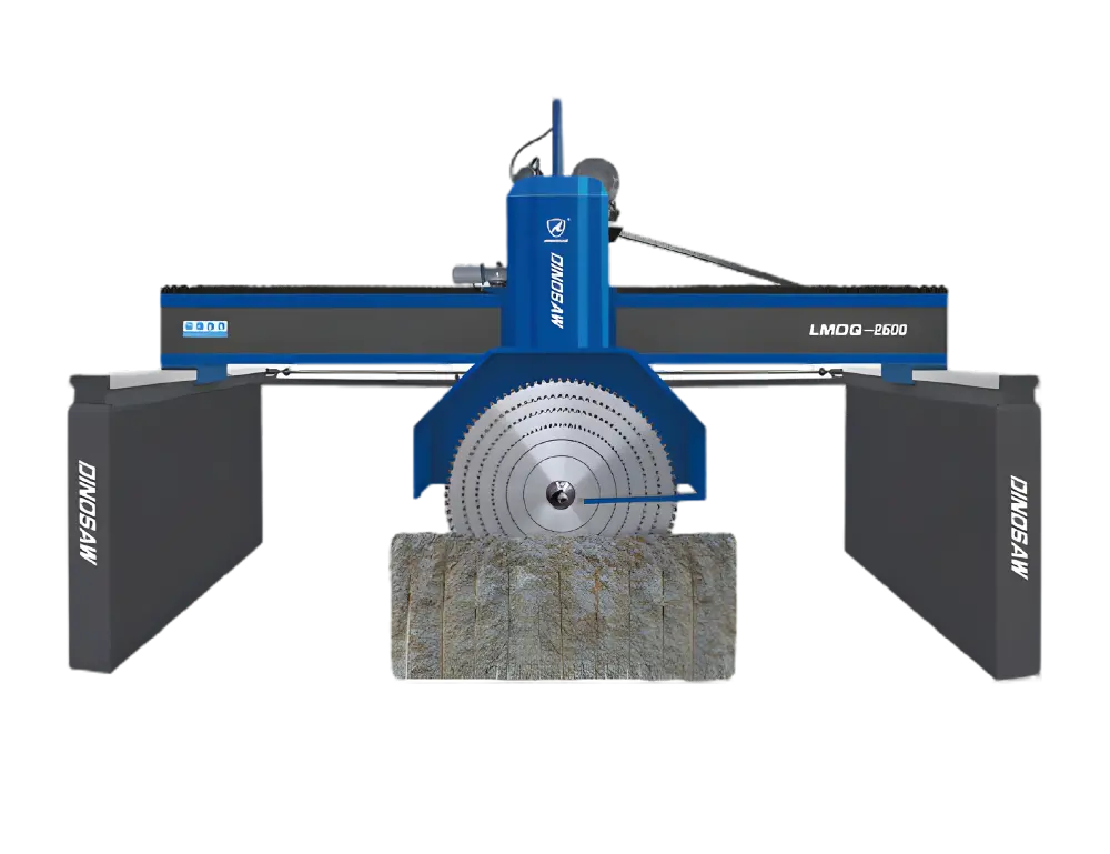 DINOSAW stone cutting machines achieve ±0.2mm cutting height precision through hydraulic lifting systems, exceeding industry standard ±0.5mm tolerance by 150%. This accuracy comes from cast bridge structure with large-diameter guide columns and reinforced beams that eliminate vibration-induced deviations. Gear rack technology ensures consistent slab thickness across multiple cuts. The combination of hydraulic precision control and robust mechanical structure maintains dimensional consistency even during processing hundreds of stone blocks.