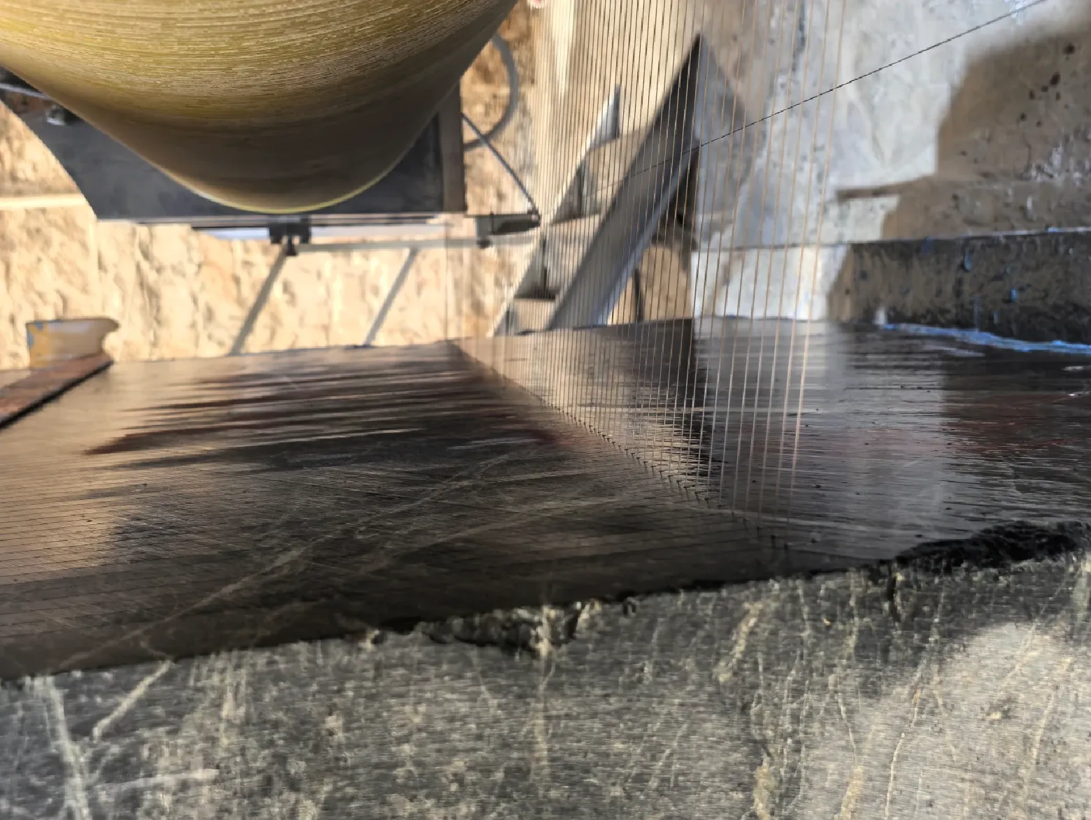 DINOSAW diamond multi‑wire saw uses constant tension, gantry rigidity, and optimized wire speed to deliver exact slicing and uniform thickness.