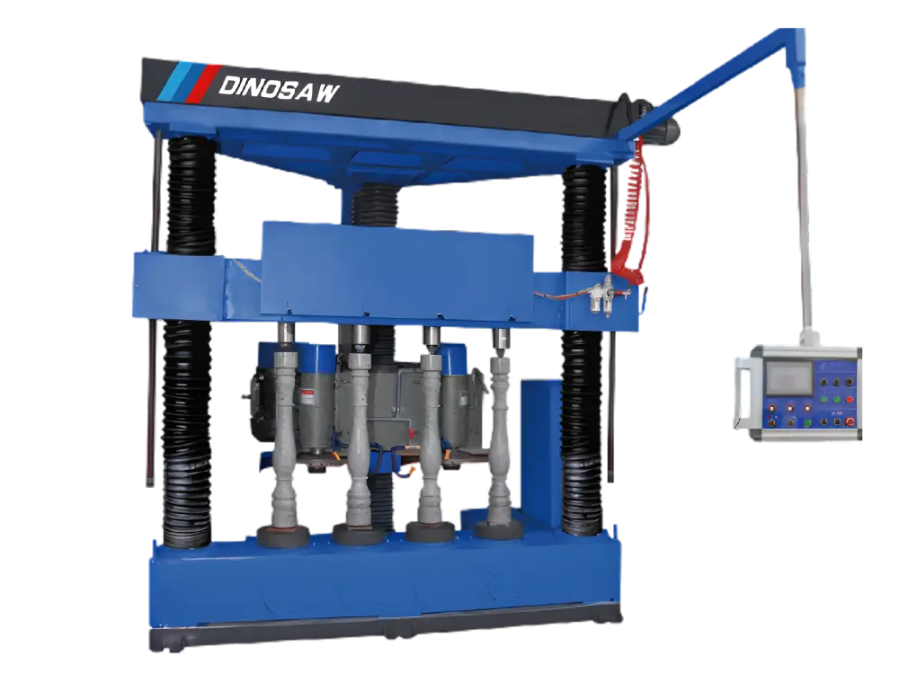 The DINOSAW Vertical 4-Workpiece Stone Cutting Machine revolutionizes baluster production with its isosceles trapezoid structure and control system. Unlike conventional machines, it employs four synchronized cutting heads that simultaneously process multiple workpieces while maintaining perfect symmetry. The precise template tracking system ensures accurate replication, achieving dimensional tolerances within ±0.5mm even across complex profiles.
