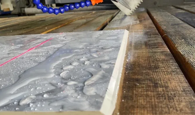 قطع ألواح الحجر الصناعي في سير العمل التصنيعي
