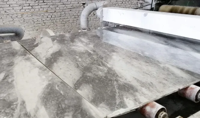 Marble slabs were loaded onto the polishing machine with stable support and orientation.